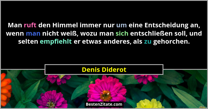 Man ruft den Himmel immer nur um eine Entscheidung an, wenn man nicht weiß, wozu man sich entschließen soll, und selten empfiehlt er etwas anderes, als zu gehorchen.