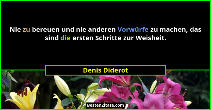 Nie zu bereuen und nie anderen Vorwürfe zu machen, das sind die ersten Schritte zur Weisheit.