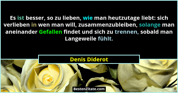 Es ist besser, so zu lieben, wie man heutzutage liebt: sich verlieben in wen man will, zusammenzubleiben, solange man aneinander Gefallen findet und sich zu trennen, sobald man Langeweile fühlt.