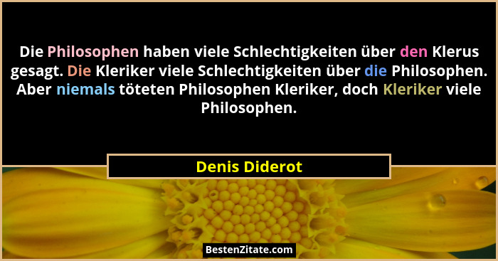 Die Philosophen haben viele Schlechtigkeiten über den Klerus gesagt. Die Kleriker viele Schlechtigkeiten über die Philosophen. Aber niemals töteten Philosophen Kleriker, doch Kleriker viele Philosophen.