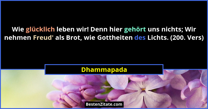 Wie glücklich leben wir! Denn hier gehört uns nichts; Wir nehmen Freud' als Brot, wie Gottheiten des Lichts. (200. Vers)