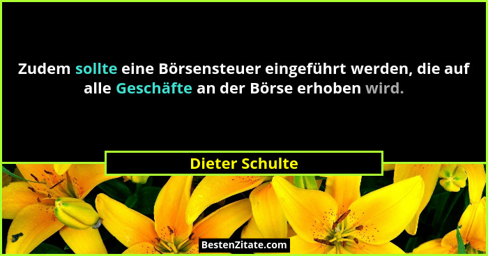 Zudem sollte eine Börsensteuer eingeführt werden, die auf alle Geschäfte an der Börse erhoben wird.