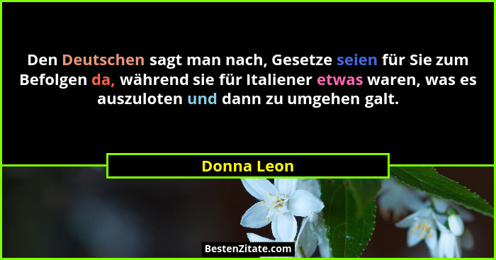 Den Deutschen sagt man nach, Gesetze seien für Sie zum Befolgen da, während sie für Italiener etwas waren, was es auszuloten und dann zu umgehen galt.