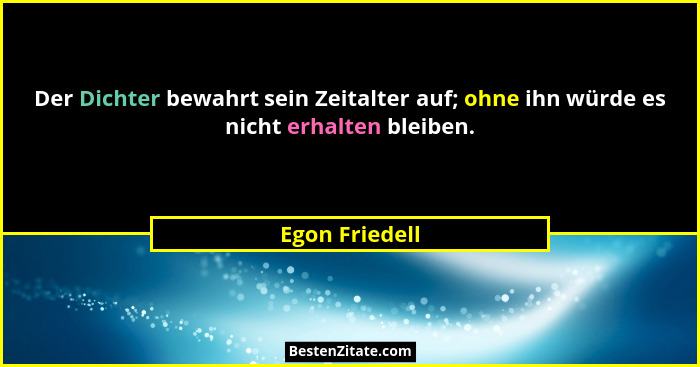 Der Dichter bewahrt sein Zeitalter auf; ohne ihn würde es nicht erhalten bleiben.
