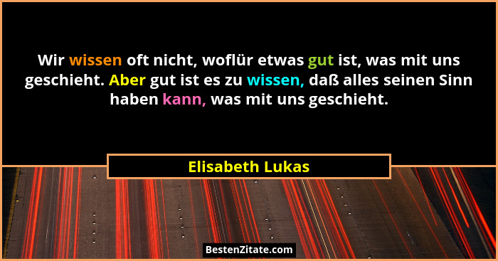 Wir wissen oft nicht, woflür etwas gut ist, was mit uns geschieht. Aber gut ist es zu wissen, daß alles seinen Sinn haben kann, was mit uns geschieht.