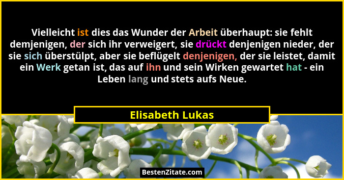 Vielleicht ist dies das Wunder der Arbeit überhaupt: sie fehlt demjenigen, der sich ihr verweigert, sie drückt denjenigen nieder, der sie sich überstülpt, aber sie beflügelt denjenigen, der sie leistet, damit ein Werk getan ist, das auf ihn und sein Wirken gewartet hat - ein Leben lang und stets aufs Neue.