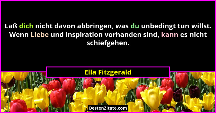 Laß dich nicht davon abbringen, was du unbedingt tun willst. Wenn Liebe und Inspiration vorhanden sind, kann es nicht schiefgehen.