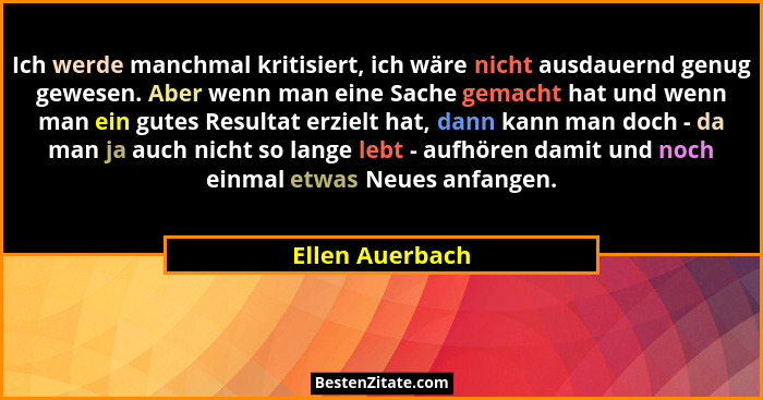 Ich werde manchmal kritisiert, ich wäre nicht ausdauernd genug gewesen. Aber wenn man eine Sache gemacht hat und wenn man ein gutes Resultat erzielt hat, dann kann man doch - da man ja auch nicht so lange lebt - aufhören damit und noch einmal etwas Neues anfangen.