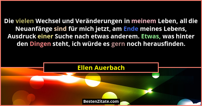 Die vielen Wechsel und Veränderungen in meinem Leben, all die Neuanfänge sind für mich jetzt, am Ende meines Lebens, Ausdruck einer Suche nach etwas anderem. Etwas, was hinter den Dingen steht, ich würde es gern noch herausfinden.