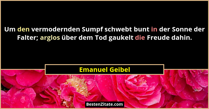Um den vermodernden Sumpf schwebt bunt in der Sonne der Falter; arglos über dem Tod gaukelt die Freude dahin.