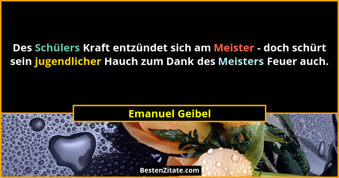 Des Schülers Kraft entzündet sich am Meister - doch schürt sein jugendlicher Hauch zum Dank des Meisters Feuer auch.