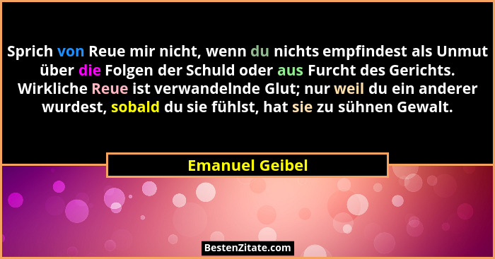 Sprich von Reue mir nicht, wenn du nichts empfindest als Unmut über die Folgen der Schuld oder aus Furcht des Gerichts. Wirkliche Reue ist verwandelnde Glut; nur weil du ein anderer wurdest, sobald du sie fühlst, hat sie zu sühnen Gewalt.