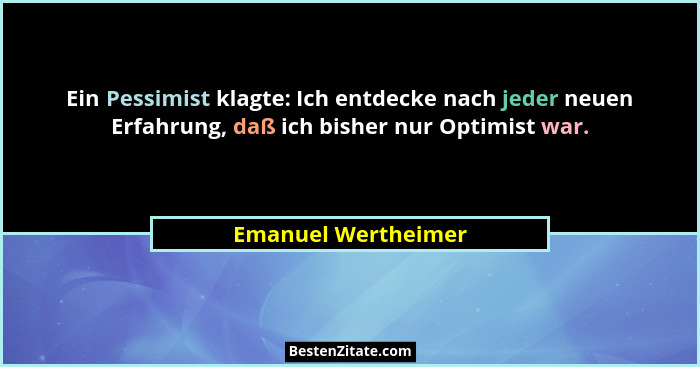 Ein Pessimist klagte: Ich entdecke nach jeder neuen Erfahrung, daß ich bisher nur Optimist war.