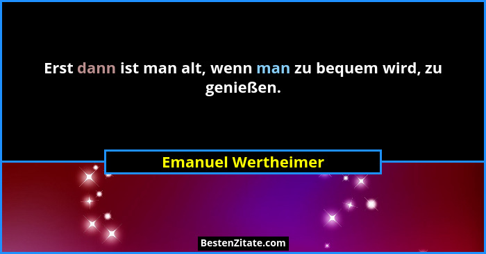 Erst dann ist man alt, wenn man zu bequem wird, zu genießen.