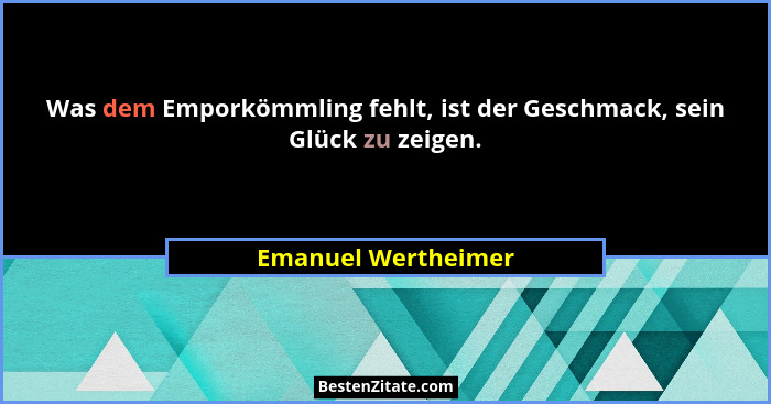 Was dem Emporkömmling fehlt, ist der Geschmack, sein Glück zu zeigen.