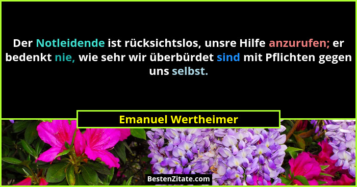 Der Notleidende ist rücksichtslos, unsre Hilfe anzurufen; er bedenkt nie, wie sehr wir überbürdet sind mit Pflichten gegen uns selbst.