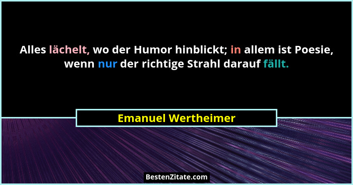 Alles lächelt, wo der Humor hinblickt; in allem ist Poesie, wenn nur der richtige Strahl darauf fällt.