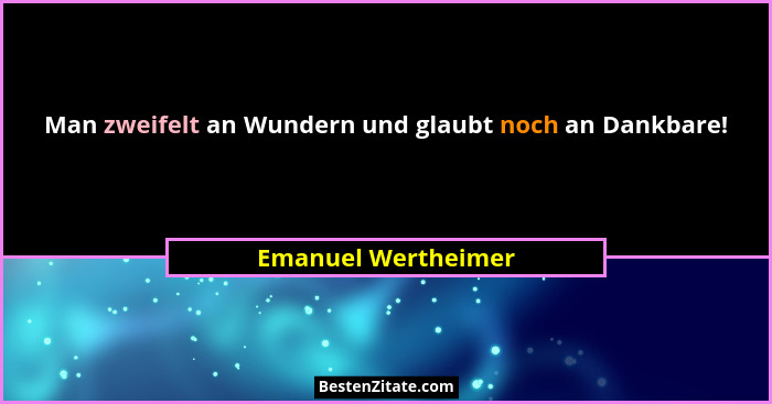 Man zweifelt an Wundern und glaubt noch an Dankbare!