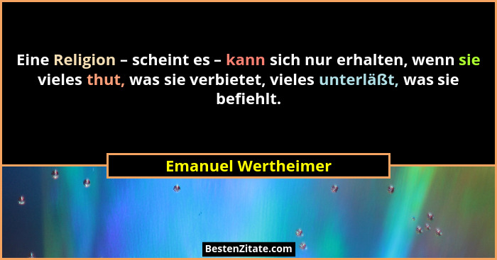 Eine Religion – scheint es – kann sich nur erhalten, wenn sie vieles thut, was sie verbietet, vieles unterläßt, was sie befiehlt.