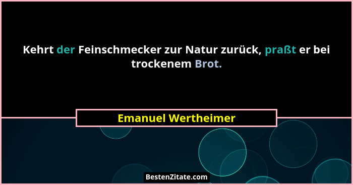 Kehrt der Feinschmecker zur Natur zurück, praßt er bei trockenem Brot.