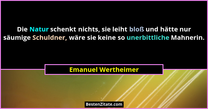 Die Natur schenkt nichts, sie leiht bloß und hätte nur säumige Schuldner, wäre sie keine so unerbittliche Mahnerin.