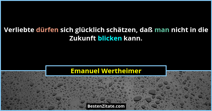 Verliebte dürfen sich glücklich schätzen, daß man nicht in die Zukunft blicken kann.