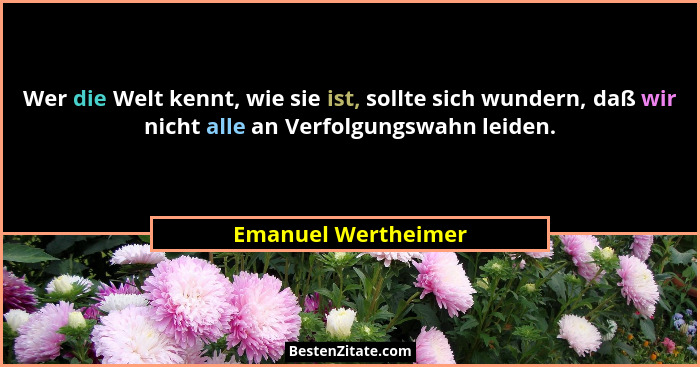 Wer die Welt kennt, wie sie ist, sollte sich wundern, daß wir nicht alle an Verfolgungswahn leiden.