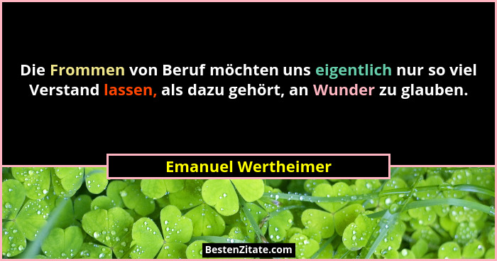 Die Frommen von Beruf möchten uns eigentlich nur so viel Verstand lassen, als dazu gehört, an Wunder zu glauben.