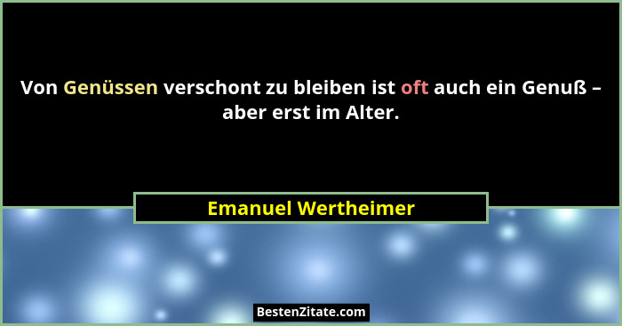 Von Genüssen verschont zu bleiben ist oft auch ein Genuß – aber erst im Alter.