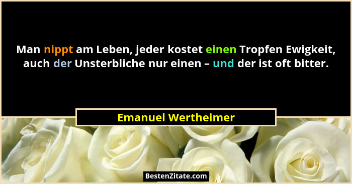 Man nippt am Leben, jeder kostet einen Tropfen Ewigkeit, auch der Unsterbliche nur einen – und der ist oft bitter.
