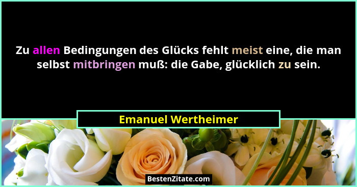 Zu allen Bedingungen des Glücks fehlt meist eine, die man selbst mitbringen muß: die Gabe, glücklich zu sein.