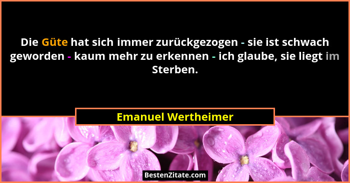 Die Güte hat sich immer zurückgezogen - sie ist schwach geworden - kaum mehr zu erkennen - ich glaube, sie liegt im Sterben.