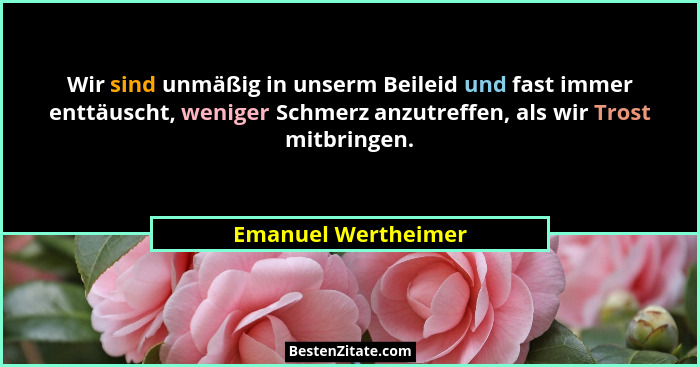 Wir sind unmäßig in unserm Beileid und fast immer enttäuscht, weniger Schmerz anzutreffen, als wir Trost mitbringen.