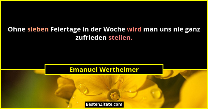 Ohne sieben Feiertage in der Woche wird man uns nie ganz zufrieden stellen.