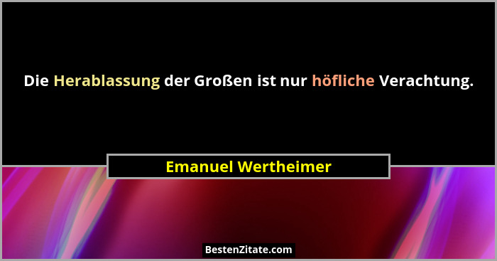 Die Herablassung der Großen ist nur höfliche Verachtung.
