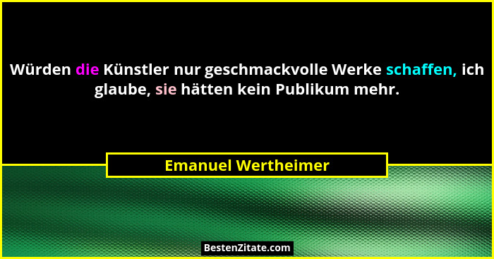Würden die Künstler nur geschmackvolle Werke schaffen, ich glaube, sie hätten kein Publikum mehr.