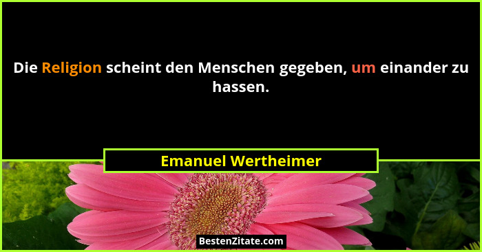 Die Religion scheint den Menschen gegeben, um einander zu hassen.