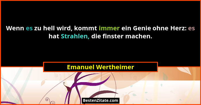 Wenn es zu hell wird, kommt immer ein Genie ohne Herz: es hat Strahlen, die finster machen.