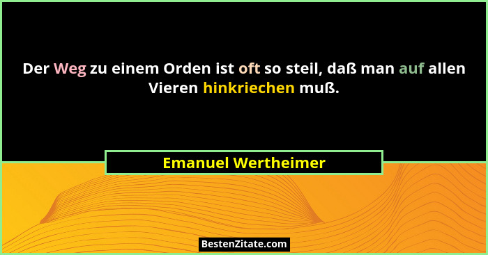 Der Weg zu einem Orden ist oft so steil, daß man auf allen Vieren hinkriechen muß.