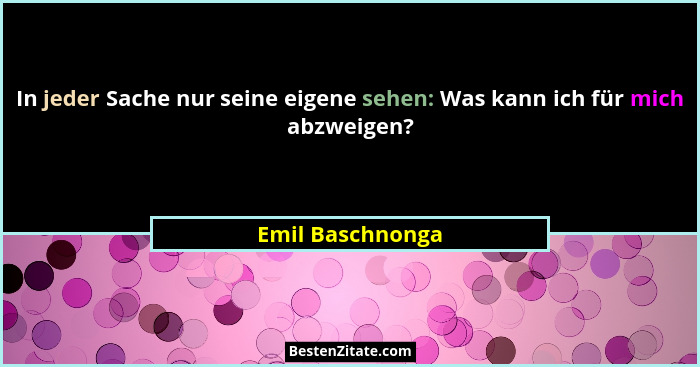 In jeder Sache nur seine eigene sehen: Was kann ich für mich abzweigen?