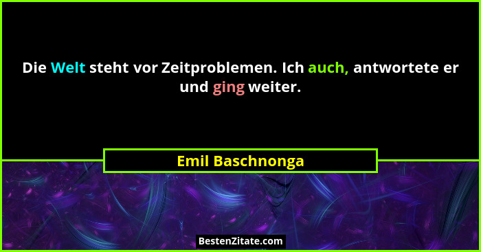 Die Welt steht vor Zeitproblemen. Ich auch, antwortete er und ging weiter.