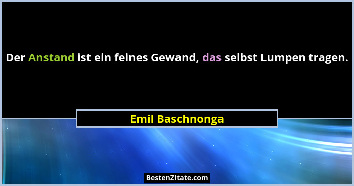 Der Anstand ist ein feines Gewand, das selbst Lumpen tragen.