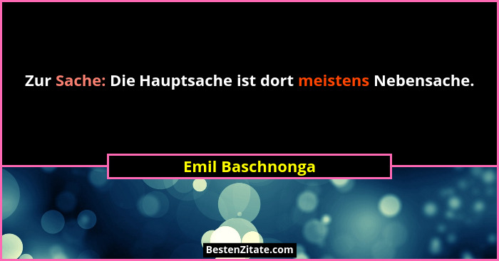 Zur Sache: Die Hauptsache ist dort meistens Nebensache.