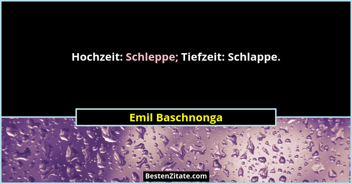 Hochzeit: Schleppe; Tiefzeit: Schlappe.