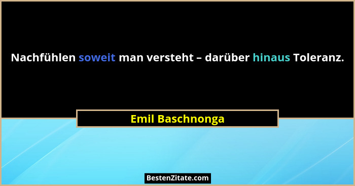 Nachfühlen soweit man versteht – darüber hinaus Toleranz.