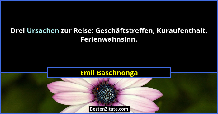Drei Ursachen zur Reise: Geschäftstreffen, Kuraufenthalt, Ferienwahnsinn.