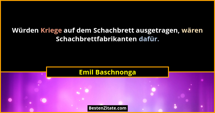 Würden Kriege auf dem Schachbrett ausgetragen, wären Schachbrettfabrikanten dafür.