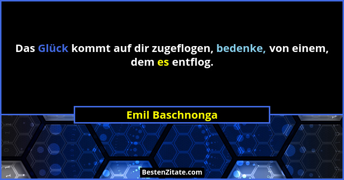 Das Glück kommt auf dir zugeflogen, bedenke, von einem, dem es entflog.