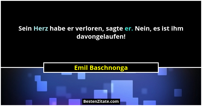 Sein Herz habe er verloren, sagte er. Nein, es ist ihm davongelaufen!