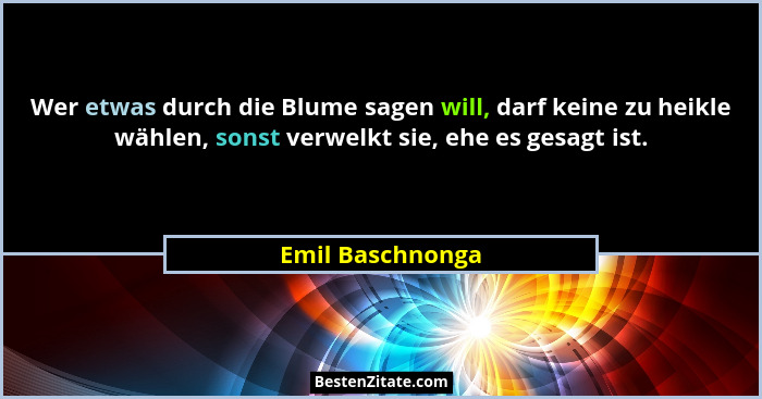 Wer etwas durch die Blume sagen will, darf keine zu heikle wählen, sonst verwelkt sie, ehe es gesagt ist.
